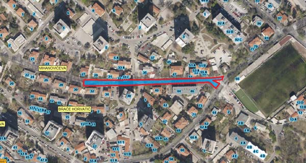 zabranit će se prometovanje vozila u svim privozima dijelu Mihanovićeve ulice
