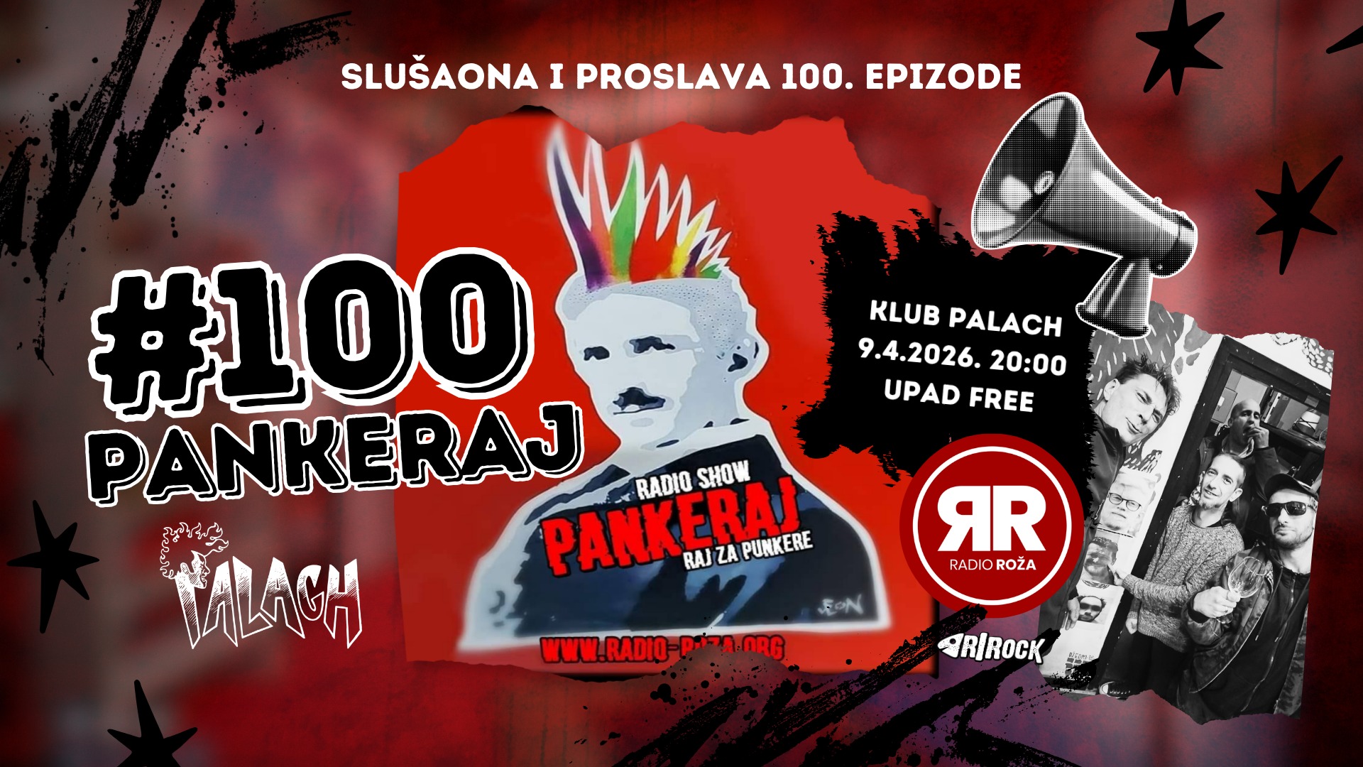 Istoga dana, u koncertnoj dvorani Kluba Palach, održat će se i jubilarno 100. izdanje Pankeraja, radijske emisije koja već pet godina na Radio Roži daje prostor punku u svim njegovim oblicima. Pankeraj ovom prilikom izlazi iz etera i seli uživo u Palach, gdje će publika moći čuti selekciju najboljeg što punk nudi, velikim dijelom s vinila. Program počinje u 20 sati, a ulaz je slobodan.