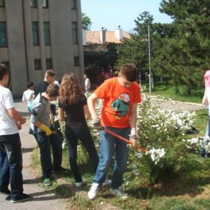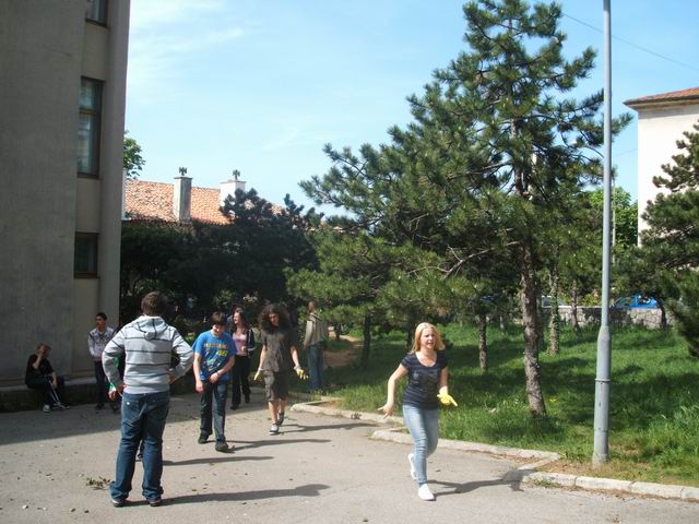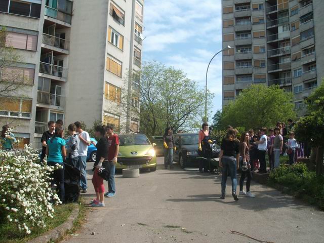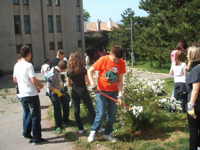 Ispred ulaza u školu, u utorak 12. travnja 2011. u 11,00 sati okupilo se 100-tinjak učenika, njihovih nastavnika, štićenici iz Prihvatilišta “Ruže sv.Franje” koji su zajedno s ravnateljicom škole, predstavnicima MO krenuli u čišćenje okoliša škole.