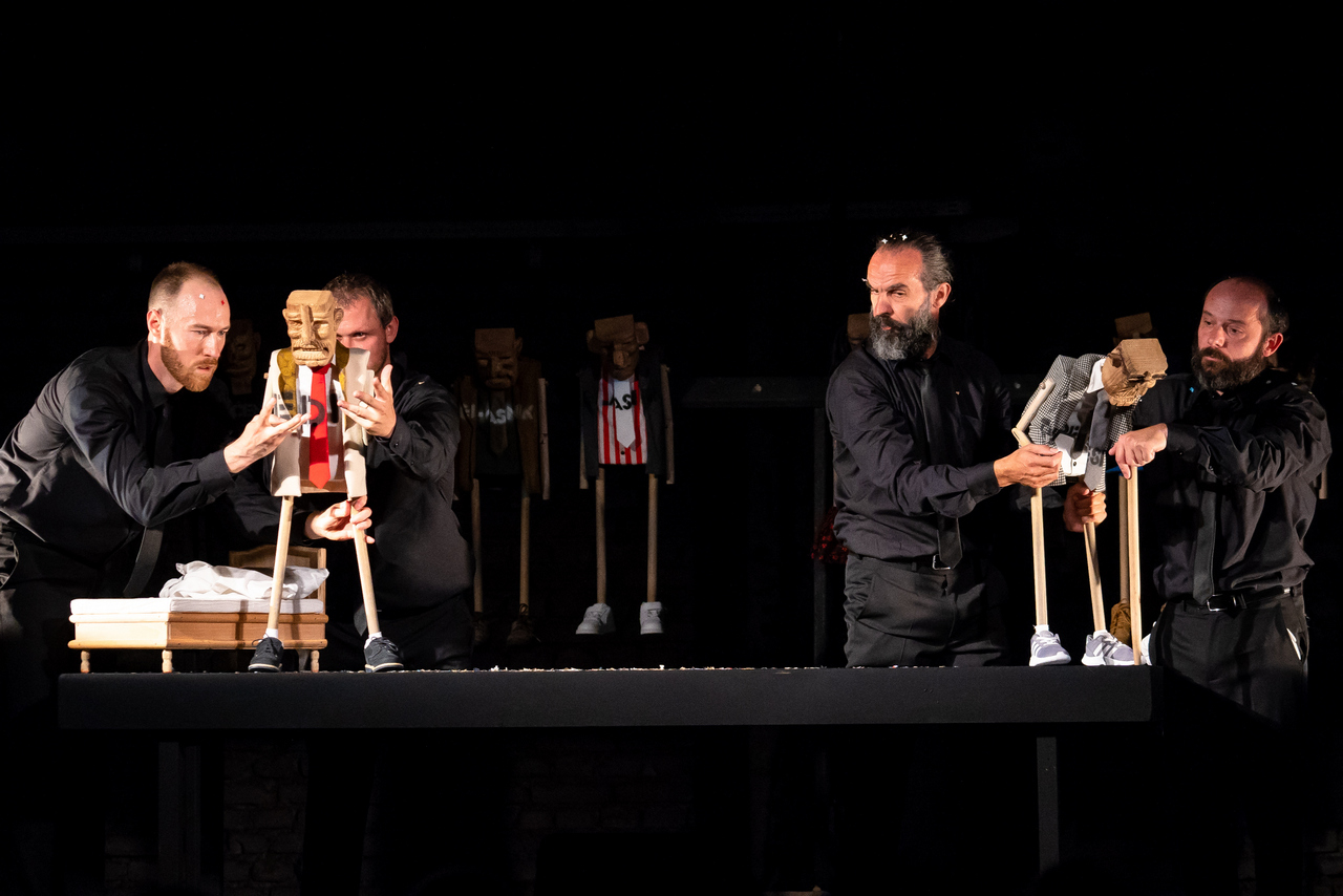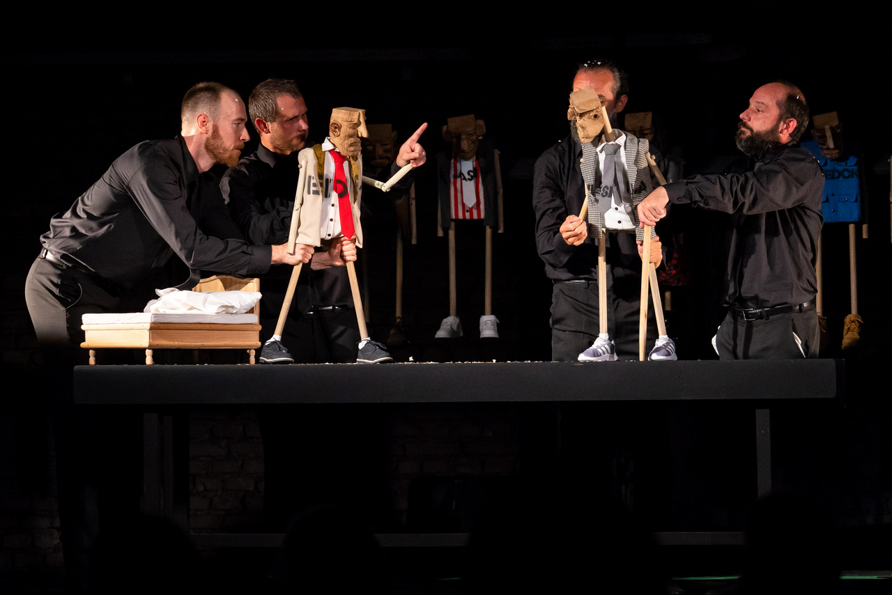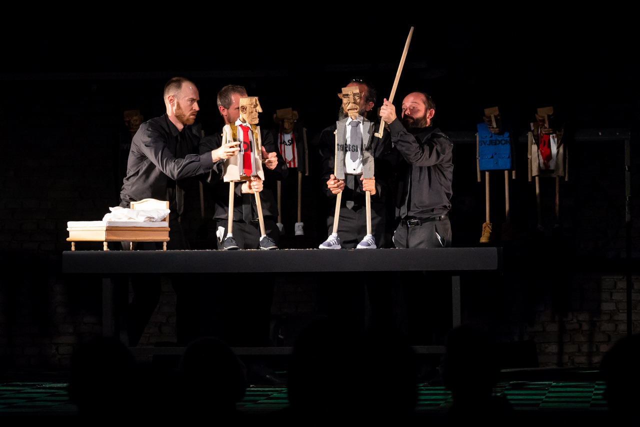 U predstavi glume Edi Ćelić, Dean Krivačić, Mario Jovev, Alex Đaković i Nikola Nedić. Autorski tim, uz Argentinca Delprata, čine i dramaturginja Nataša Antulov, kostimografkinja i scenografkinja Manuela Paladin Šabanović te oblikovatelj svjetla Rafael Rodriguez. Asistentice redatelja su Ana Marija Brđanović i Noemo Dessardo.