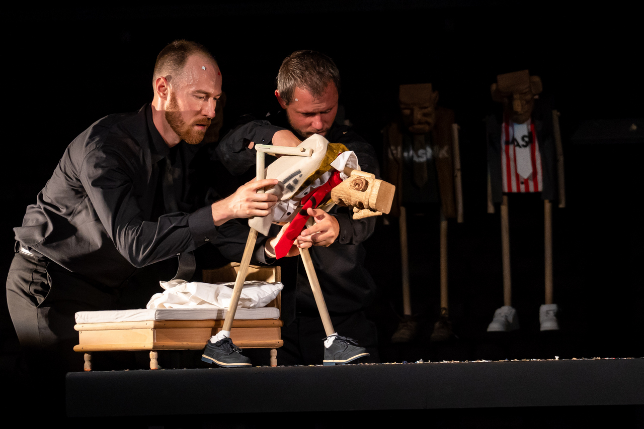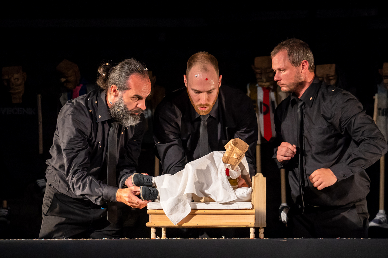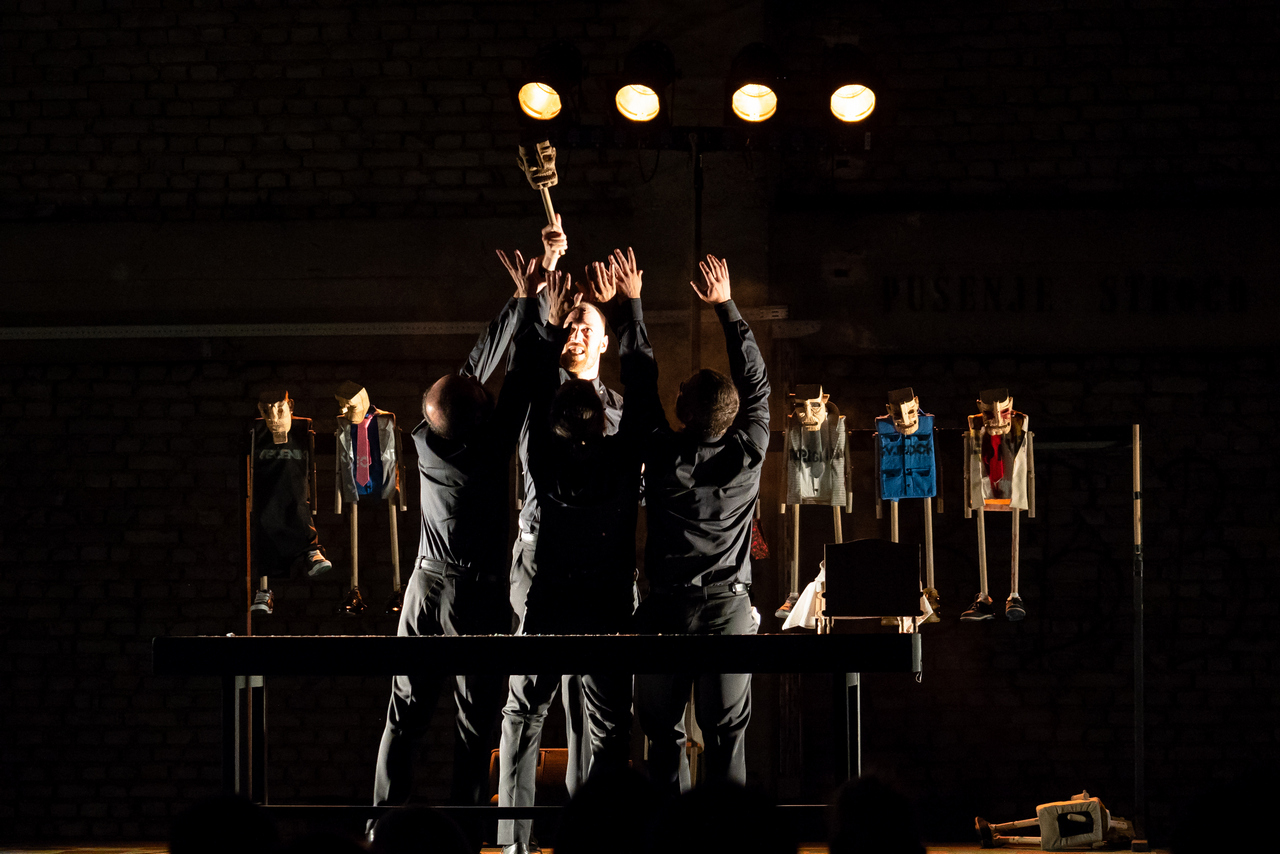 U predstavi glume Edi Ćelić, Dean Krivačić, Mario Jovev, Alex Đaković i Nikola Nedić. Autorski tim, uz Argentinca Delprata, čine i dramaturginja Nataša Antulov, kostimografkinja i scenografkinja Manuela Paladin Šabanović te oblikovatelj svjetla Rafael Rodriguez. Asistentice redatelja su Ana Marija Brđanović i Noemo Dessardo.