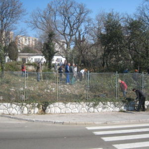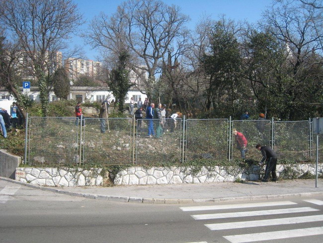 Lijep, sunčan dan, dobro raspoloženje i dobra volja i odmah se prionulo poslu. Stručna osoba Zoran Tadić iz OGU za komunalni sustav zadužen za hortikularno održavanje javnih zelenih površina nadgledao je radove, a radnici KD Čistoća, Nedeljko i Nikola, sa ručnom kosilicom i motornom pilom sjekli su stabla i šikaru kako bi se volonteri mogli probiti kroz neprohodan park.