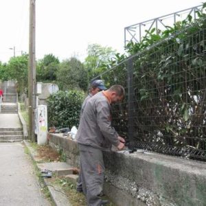 Stara, zarđala, na više mjesta popucala žičana ograda je skinuta i na njezino mjesto postavlja se nova.