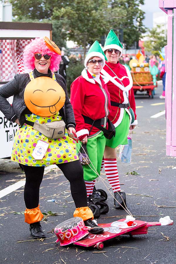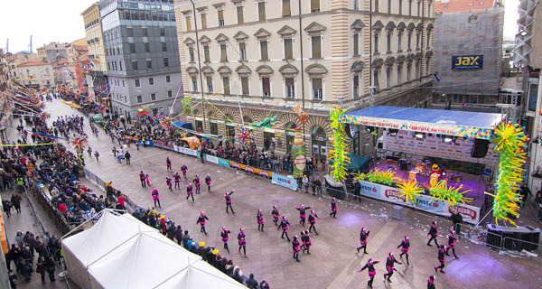 73 skupine nastupaju u povorci sa svojim alegorijskim kolima. Uz trasu povorke, od Rive Boduli, preko ULice Ivana Zajca, Ribarske ulice i Trga bana Jelačića, Korza, Trga 128. brigade HV, Adamićeve ulice i Jadranskog trga do Rive, okupilo se više desetaka tisuća gledatelja. Uz trasu je postavljeno šest pozornica s kojih popularni voditelji, glumci i drugi zabavljači vode gledatelje kroz program povorke.