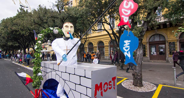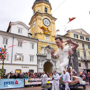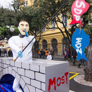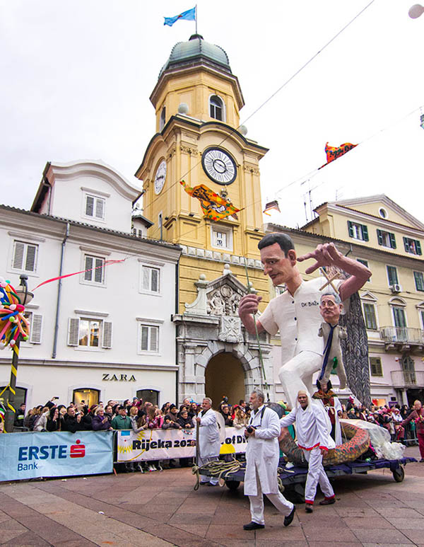 Povorka je krenula u podne predvođena mažoretkinjama, Gradskom glazbom Trsat, karnevalskim meštrom Tonijem, ovogodišnjom kraljicom karnevala Sandrom Ložnik Videčak i Morčićima.