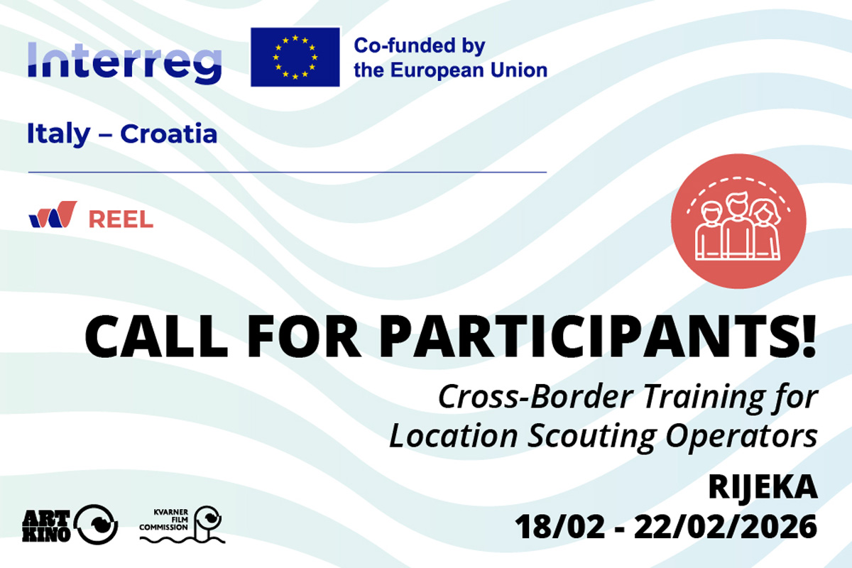 U okviru projekta REEL — „Filmsko putovanje kroz Italiju i Hrvatsku“, financiranog iz Programa prekogranične suradnje INTERREG Italija – Hrvatska 2021.–2027., Art-kino (Kvarnerska filmska komisija) otvara javni poziv za odabir 12 location scouting operatera za trodnevnu prekograničnu obuku mladih ili budućih location scouting operatera koja će se održati u Rijeci od 18. do 22. veljače 2026. godine.