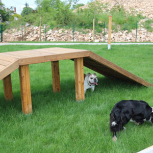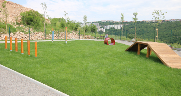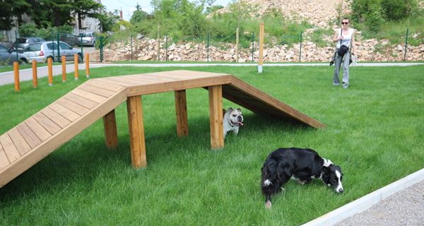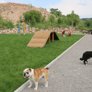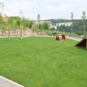 Park je ograđen, veličine 600m2, središnji dio parka je travnat s agiliti