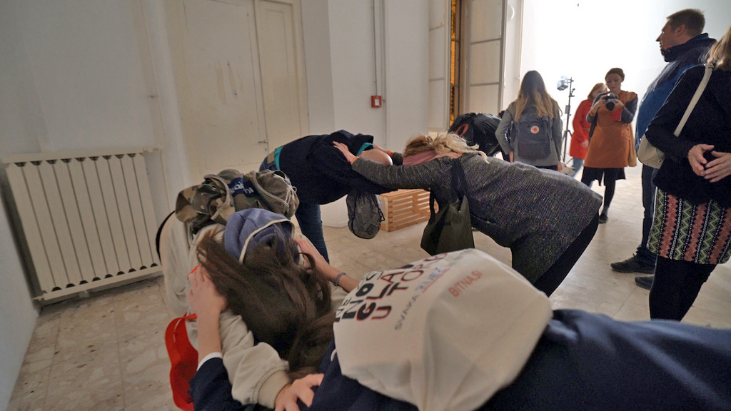 Izložba naziva „Izvoditi izložbu“ nastala je pod okriljem mentora doc. art. Hrvoja Urumovića i doc. art. Dražena Vitolovića.