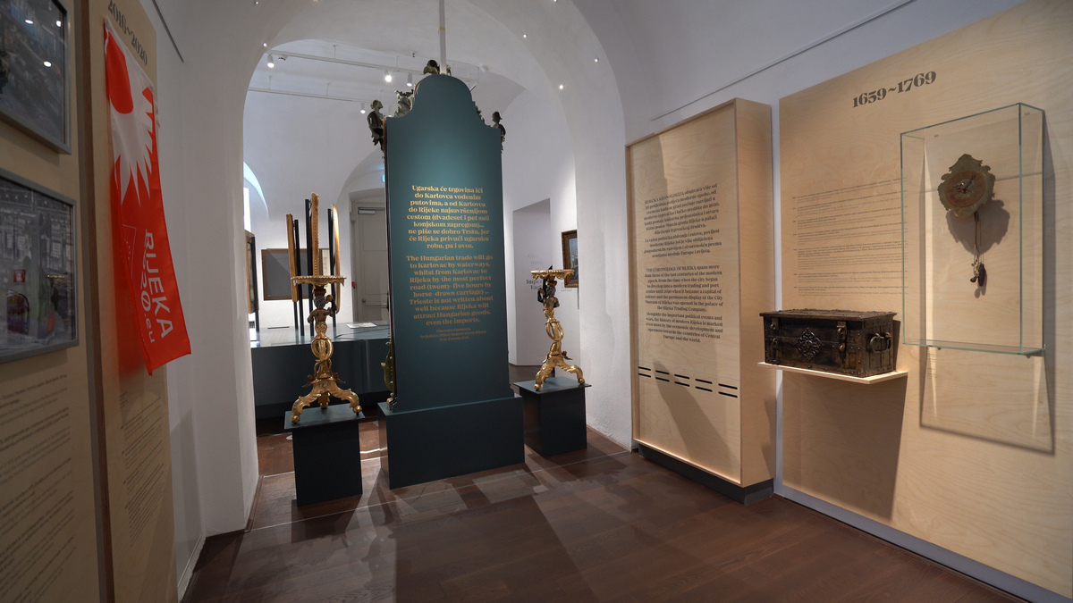 U izložbenom postavu, koji se proteže u više od 30 prostorija na dva kata, predstavljene su mnoge riječke teme, poput prvog torpeda na svijetu, Mornaričke akademije, Rijeke kao iseljeničke luke, povijesti gradskog kazališta, riječkih nebodera, glazbe, riječkog rocka, povijesti velikih riječkih tvrtki – Tvornice papira, Tvornice duhana.