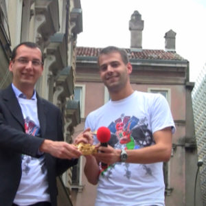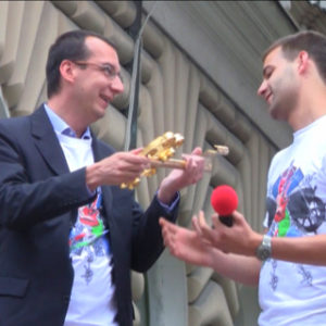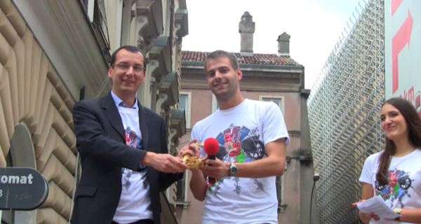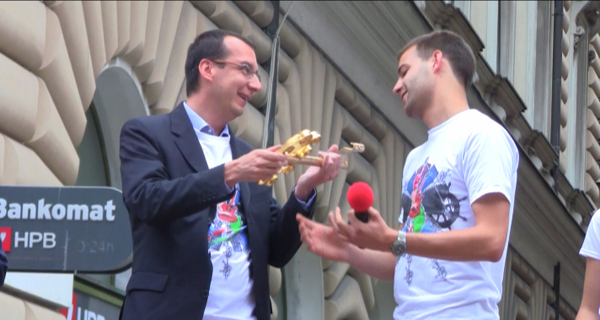 Filipović koji je simbolično predao ključeve grada predstavniku studenata. Petu