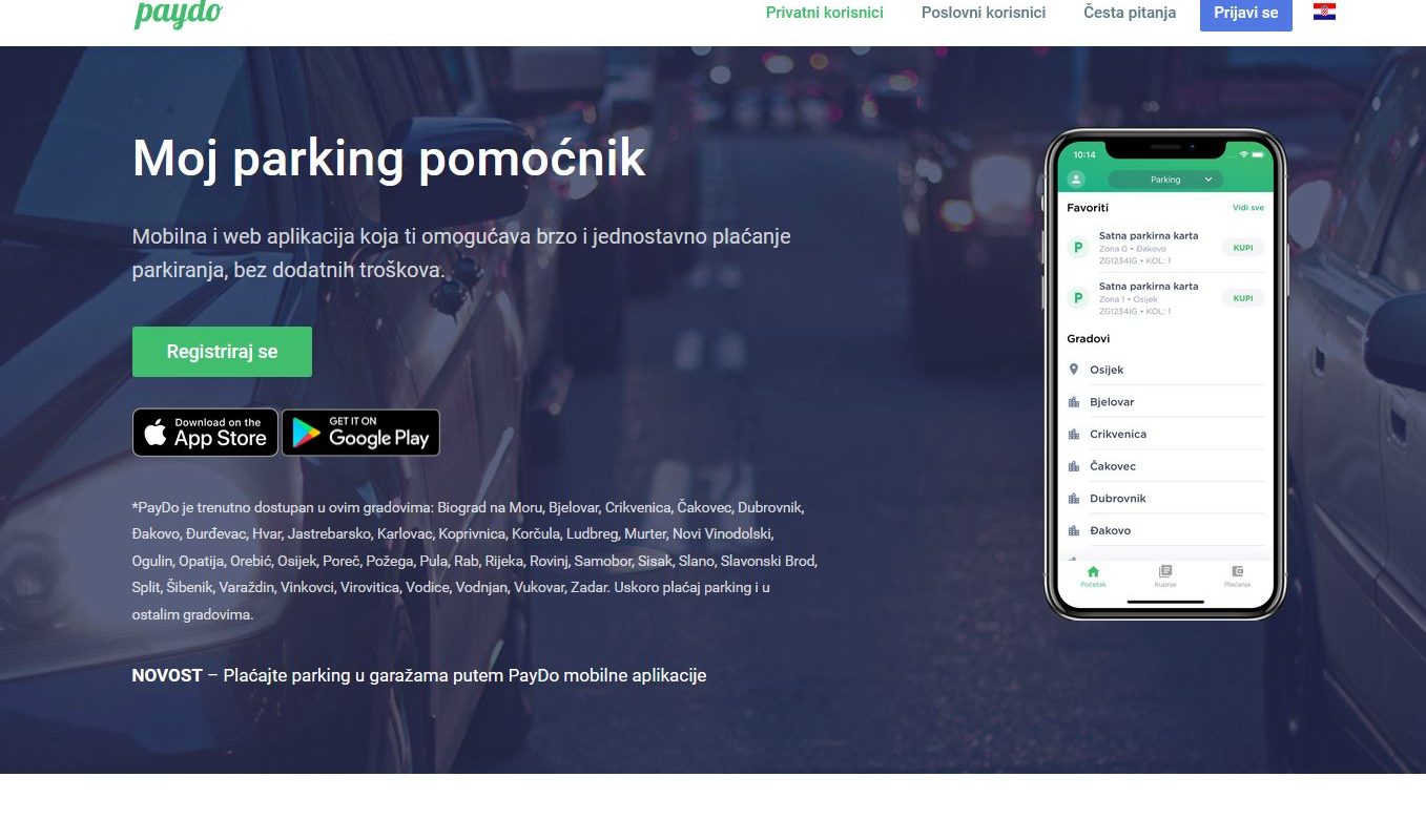 (App Store i Google Play), a može se preuzeti i na web stranici: www.paydo.hr