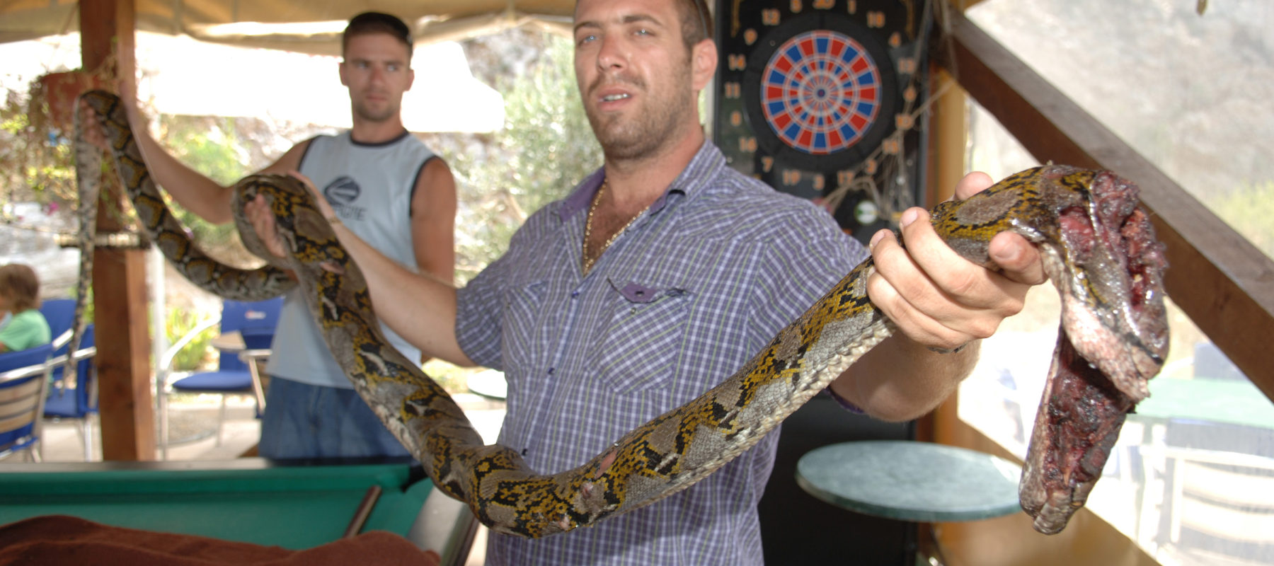Nakon što su ubili zmiju tešku 35 kilograma odnijeli su je pokazati gostima u lokalnom kafiću.