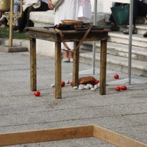 na stol pred glavnim ulazom u HNK, na drugi stol su postavili košaru s