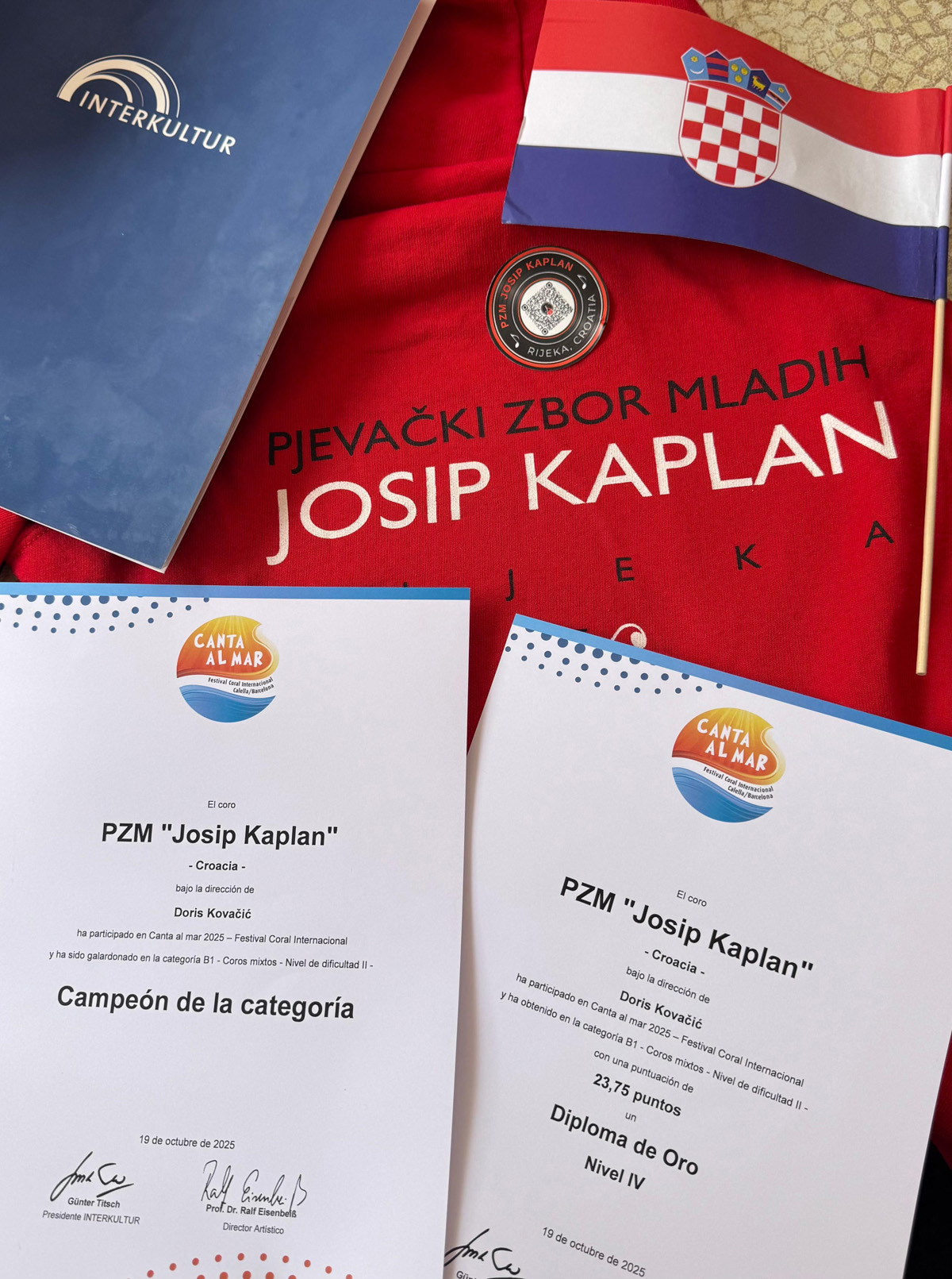 Na međunarodnom natjecanju Canta al Mar, koje se održalo u Calelli i Barceloni (Španjolska) od 16. do 20. listopada u organizaciji Interkultura, riječki su pjevači osvojili zlatnu plaketu s 23,75 bodova te su proglašeni pobjednicima kategorije B1 (manji mješoviti zborovi).