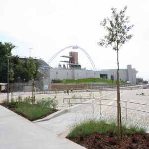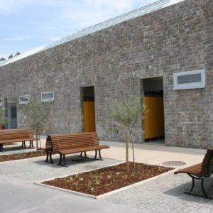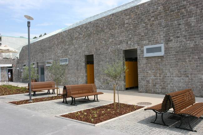Uređenje plažnog pojasa ispod bazenskoga kompleksa Kantrida u dužini od 350 metara i površini od 14.000 m², osim uređenja plaže sa završnim slojem oblutaka, obuhvatilo je i djelomično popločenje sunčališta, izgradnju šetnica, pristupnih stepenica, pješčanika za djecu, kao i uređenje igrališta odbojke na pijesku te zelenih površina. Kupaćima su na raspolaganju tuševi, kao i 22 kabine za presvlačenje te 13 toaleta u čvrstom objektu, što uključuje i one prilagođene osobama s invaliditetom, za kojima je na raspolaganju i posebna rampa.