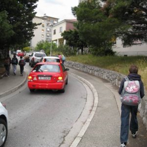 Početak ulice, kolona djece i vozila, jer osam sati je blizu, uskoro će zazvoniti školsko zvono.