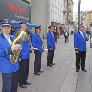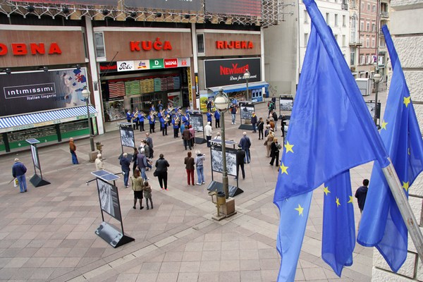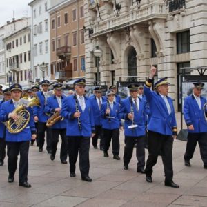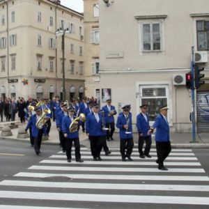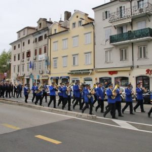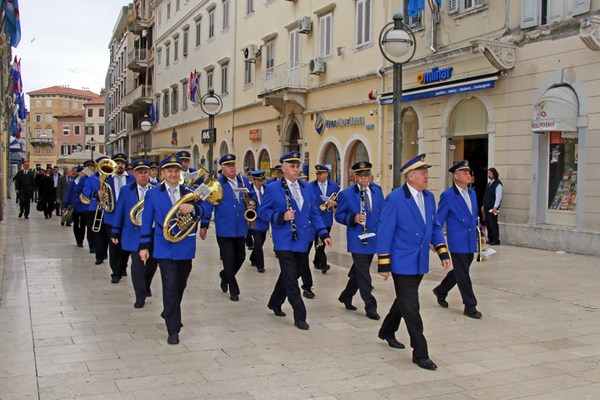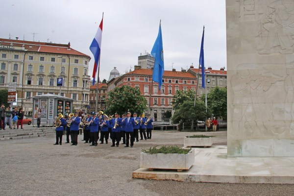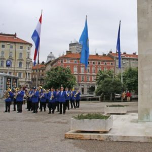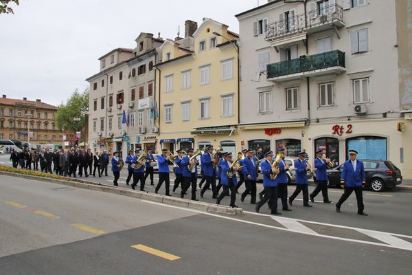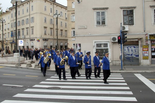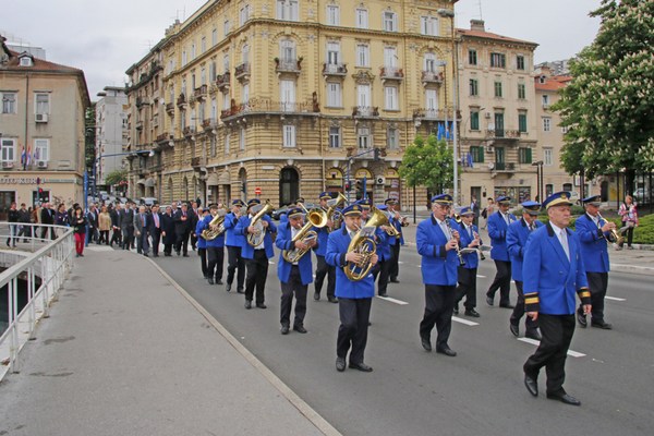 ispred zgrade Grada Rijeke te u pratnji Gradske glazbe Trsat krenula prema