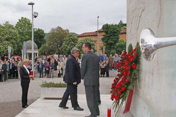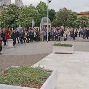 na spomeniku kod spomen kosturnice na Trsatu, a potom su se izaslanstva okupila