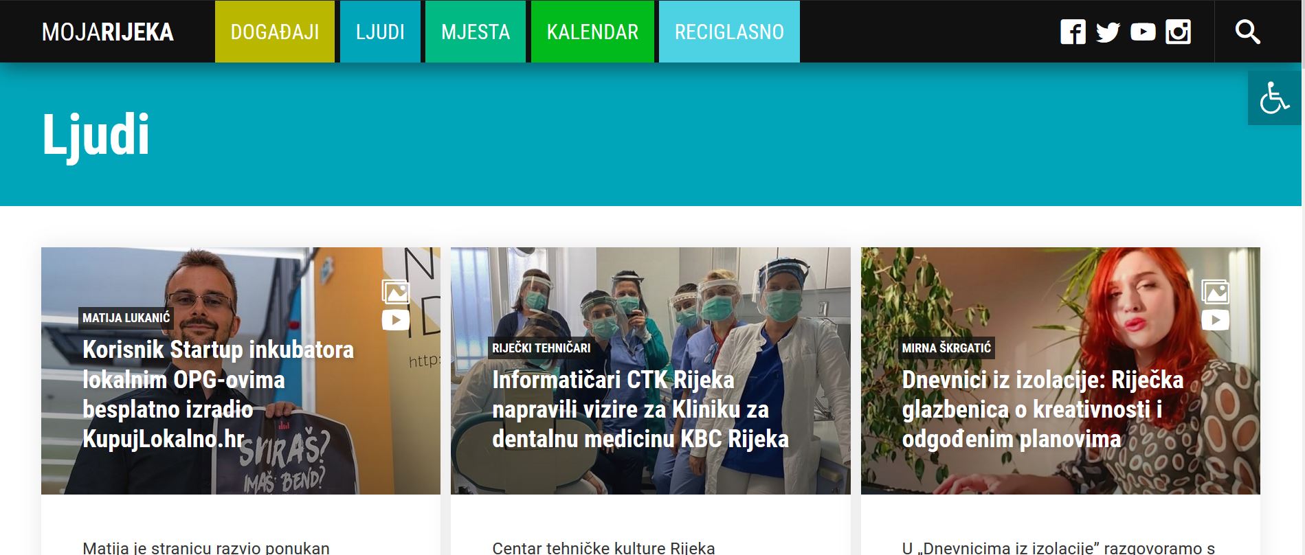 U tom smislu, rubrika Događaji okupljat će foto i video sadržaje s događanja u Rijeci i okolici, ali i vijesti i najave iz područja različitih zbivanja u društvenom životu Rijeke. Rubrike Mjesta i Ljudi predstavljat će, u reportažnim, tekstualnim, foto i video sadržajima zanimljive lokalitete u Rijeci i ljude koji predstavljaju grad u najširem smislu – umjetnike, društvene djelatnike, sportaše, osobe sa zanimljivim biografijama, građane koji su aktivni kotač u životu i mijenama grada i mnoge druge.