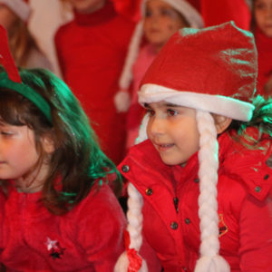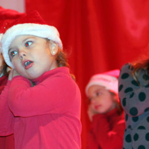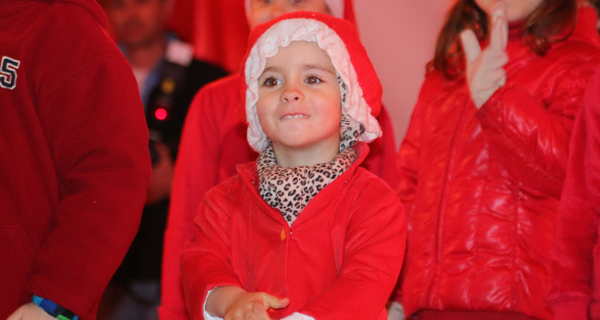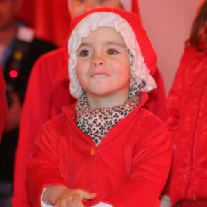 Veseli, razdragani i nasmijani mališani u crvenim kaputićima i kapicama