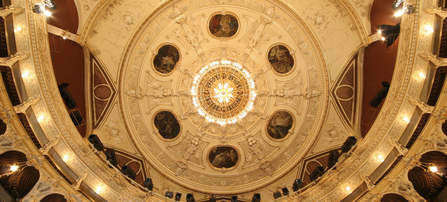 Riječ je o slikama na stropu u riječkom HNK Ivana pl. Zajca, koje su krajem 19. stoljeća naručene i dopremljene iz Beča. Slike su djela tada mladih slikara Franza Matscha te Ernsta i Gustava