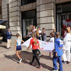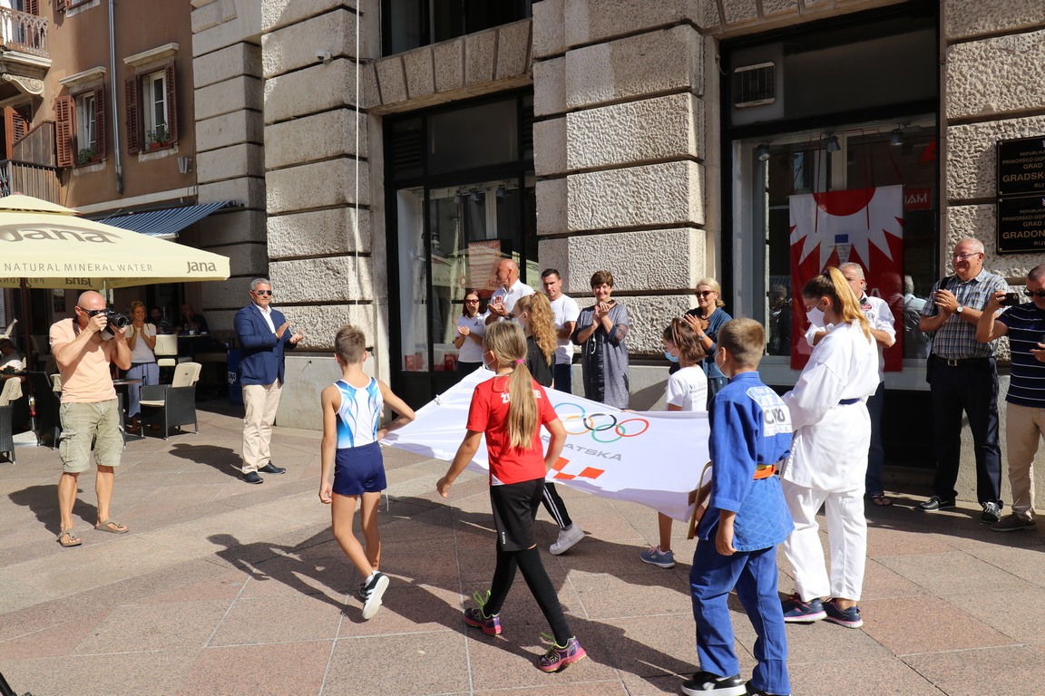 Olimpijsku zastavu koju su mu donijeli mali riječki sportaši podigao je Marin Lovrović, član Kluba Olimpijaca grada Rijeke, u nazočnosti zamjenika gradonačelnika Rijeke Nikole Ivaniša i Marine Medarić, zamjenice župana Primorsko-goranske županije.