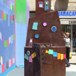 akrilnim bojama i teži oko 500 kilograma. Visoka je oko četiri metra, duga oko