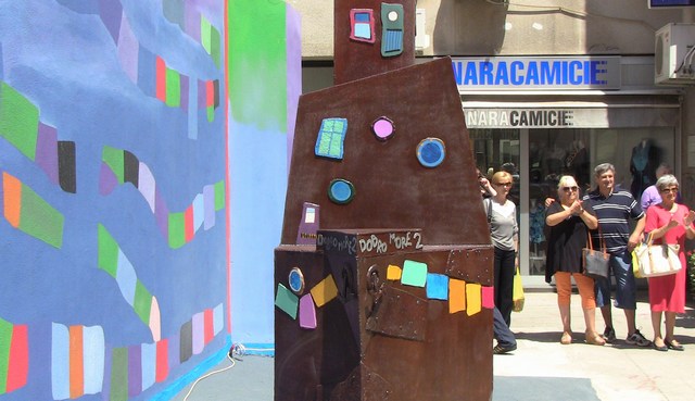 Skulptura Dobro more izrađena je od metala, oslikana je