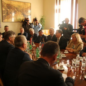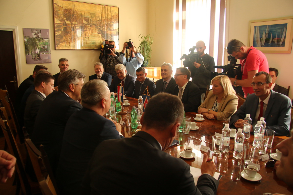 U pratnji premijera bili su ministar gospodarstva, poduzetništva i obrta Darko Horvat, ministar mora, prometa i infrastrukture Oleg Butković te ministar turizma Gari Cappelli, kao i primorsko-goranski župan Zlatko Komadina i zamjenik riječkog gradonačelnika Marko Filipović.