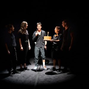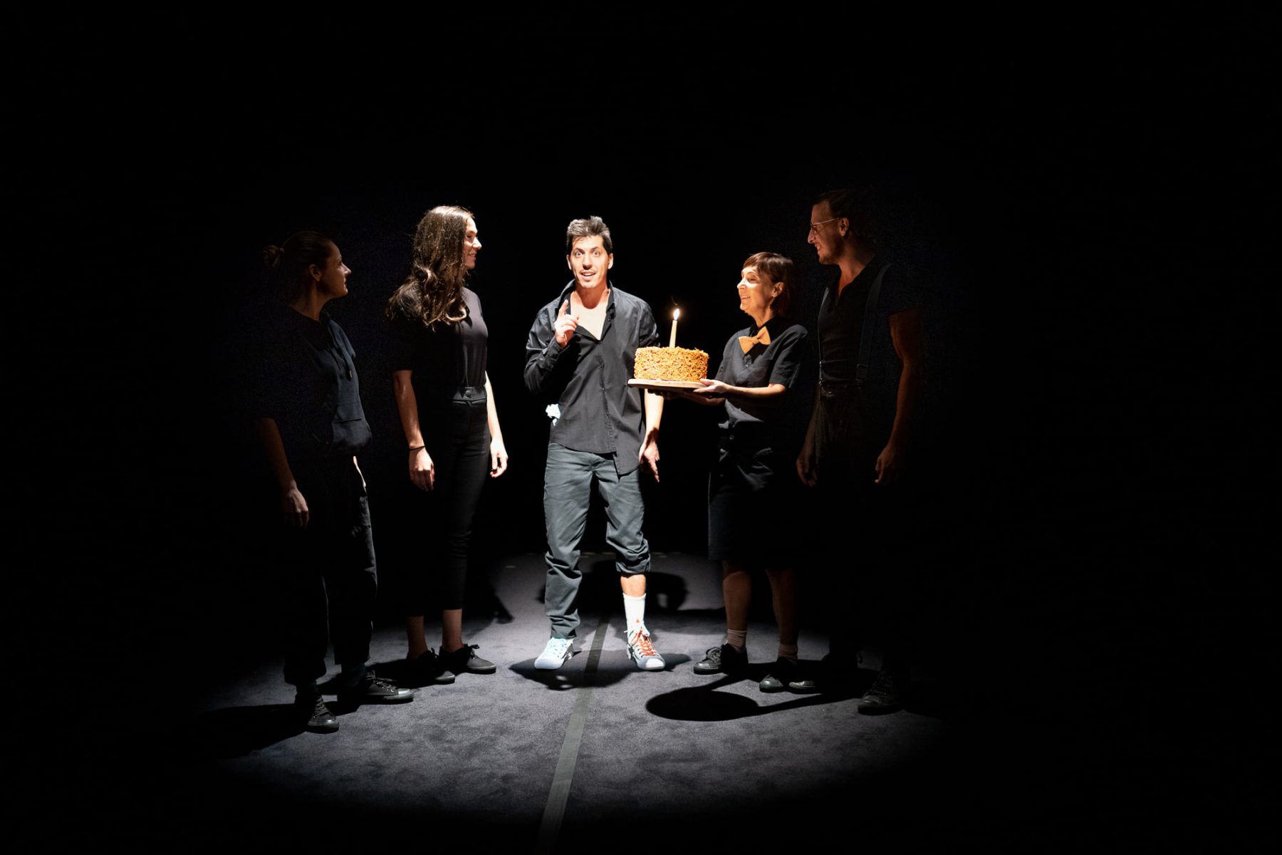 Glumci glume na praznoj pozornici, služeći se tehnikom pantomime da bi dočarali nevidljivi interijer kuće i druge predmete. Uz Zlatka Vicića u ulozi medvjeda Ursa, glumili su David Petrović, Tilen Kožamelj, Almira Štifanić, Andrea Špindel, Petra Šarac i Damir Orlić.