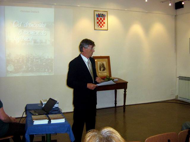 U uvodnoj riječi Damir Medved, dosadašnji predsjednik Vijeća MO Drenova, na kraju ovoga mandata, zahvalio se Christianu Grailachu na njegovom trudu i inspiraciji koju crpi iz same Drenove, Drenovčana, drenovskog krajolika, povijesti i sadašnjosti. Christian Grailach Drenovu prati tekstom – urednik je Drenovskog lista, fotografijom – autor je nekoliko samostalnih izložbi, a isto tako koristi i suvremene medije – web stranicu MO Drenova, kao i stranicu Drenove na Wikipediji koja je nastala u rujnu 2009. godine. Kao predsjednik Pododbora za kulturu pokretač je i organizator mnogobrojnih kulturno-umjetničkih zbivanja na Drenovi. Ukratko, on je kroničar zbivanja na Drenovi, svojom riječju, fotografijom i entuzijazmom koji pokreće sve oko sebe.