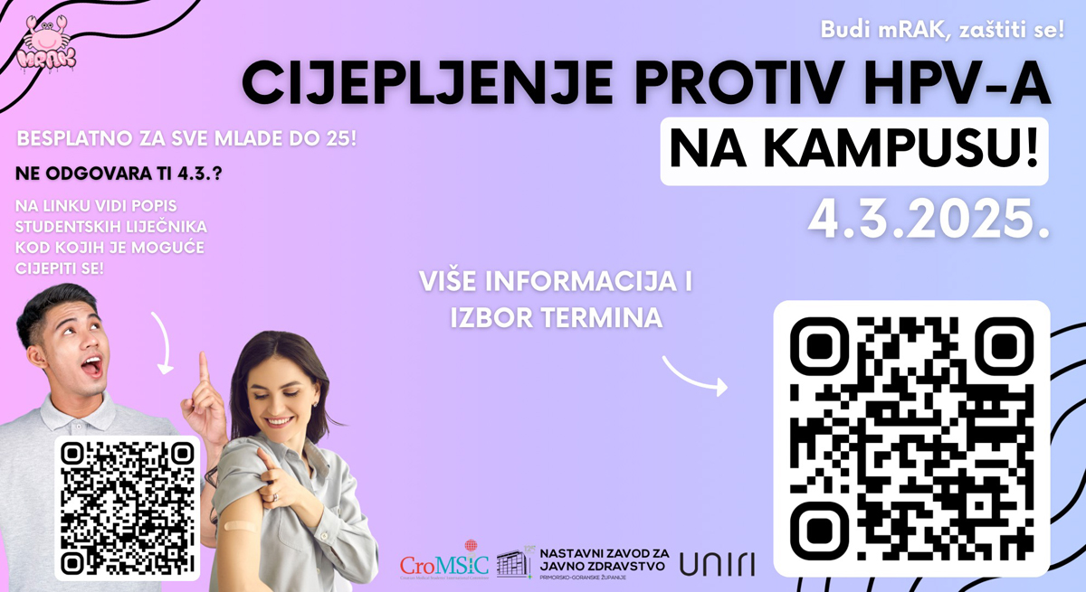 Povodom Međunarodnog dana svjesnosti o HPV-u, Međunarodna udruga studenata medicine, CroMSIC, koja provodi javnozdravstvenu i edukativnu kampanju Budi mRAK, u suradnji s Nastavnim zavodom za javno zdravstvo Primorsko-goranske županije i Sveučilištem u Rijeci organiziraju cijepljenje studenata i studentica.