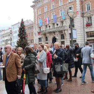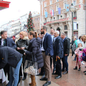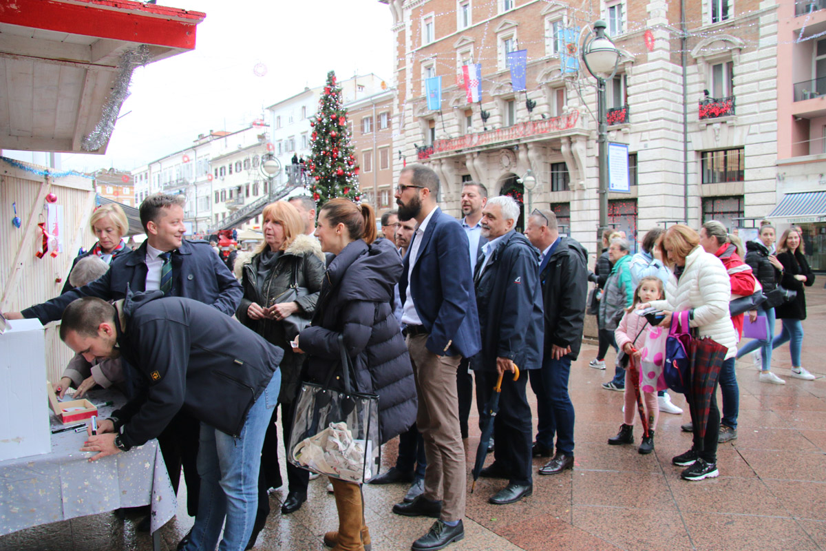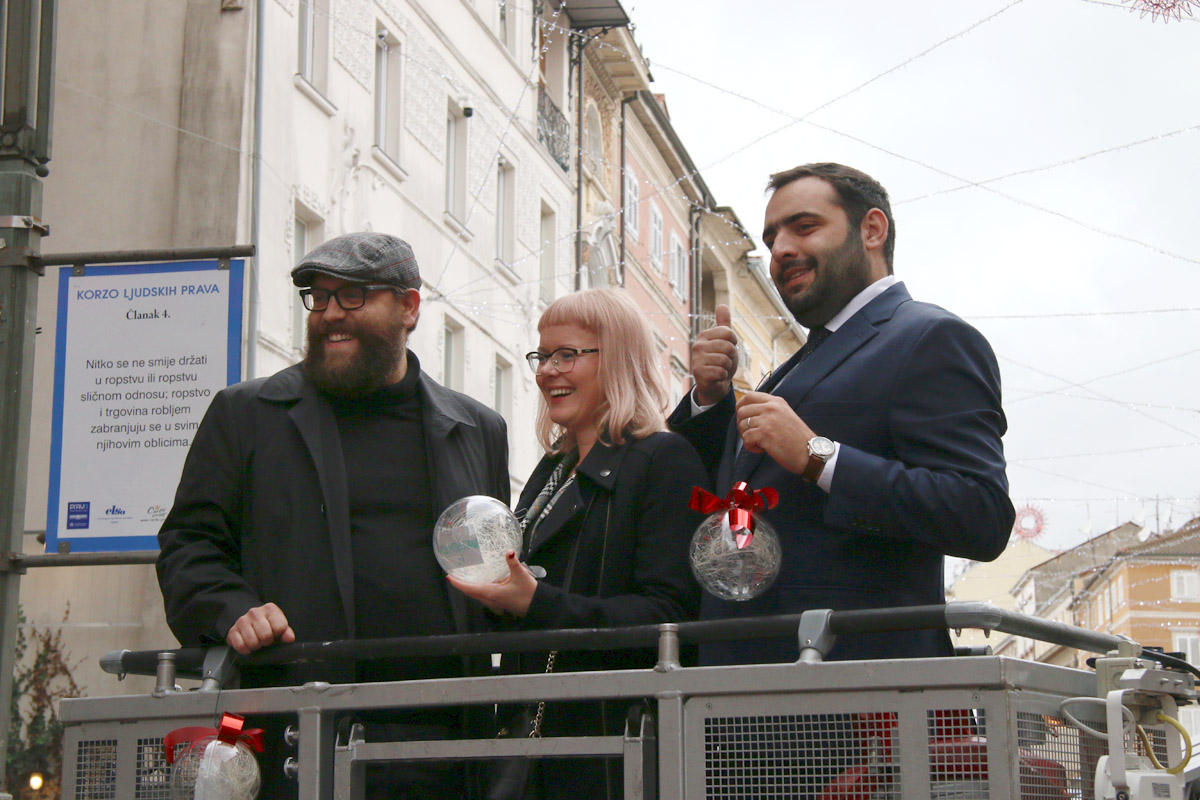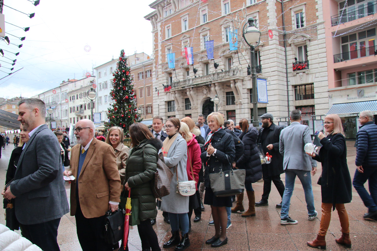 Akciji su se danas, u pauzi sjednice Gradskoga vijeća, odazvali gotovo svi riječki vijećnici te jelku na Korzu ukrasili i svojim kuglicama dobrih želja.
