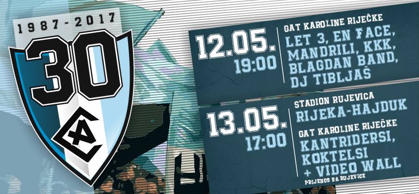 9. svibnja 1987., na dan utakmice finala kupa tadašnje države između Rijeke i Hajduka u Beogradu. Program obilježavanja ove je godine iznimno bogat.
