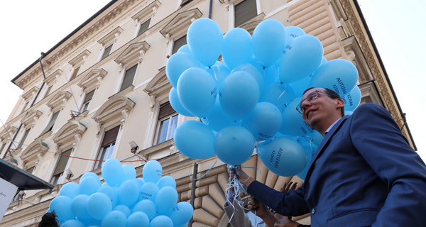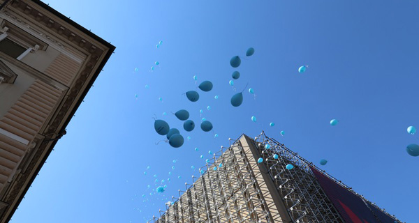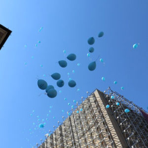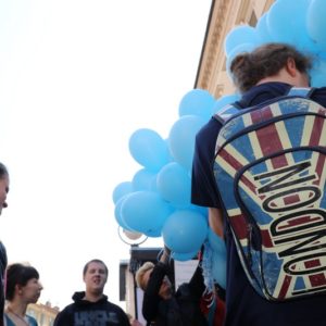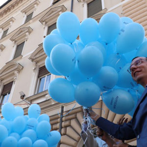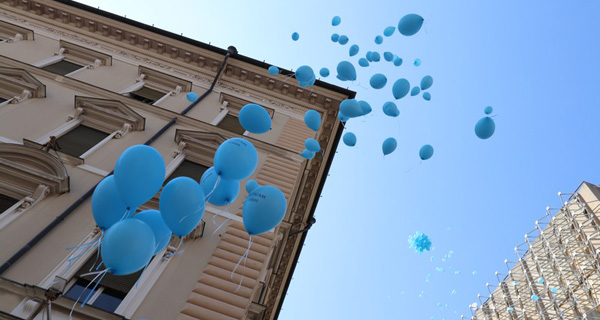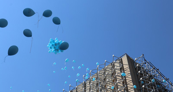 u zrak su pustili stotine plavih balona i na taj način dali podršku