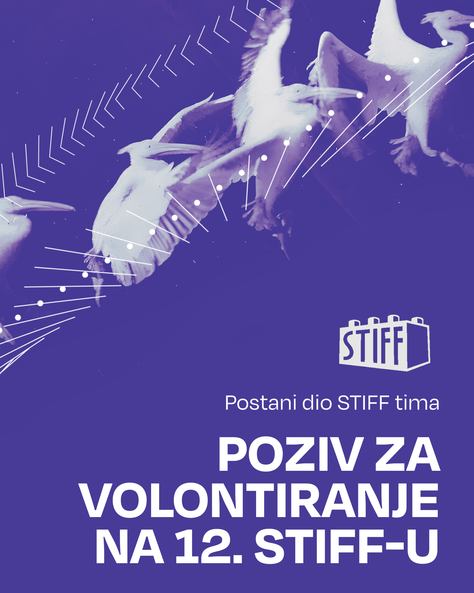 12. međunarodni studentski filmski festival – STIFF, koji se ove godine održava od 27. do 29. studenog, poziva sve zainteresirane studentice i studente da se pridruže volonterskom timu i dožive kako izgleda stvaranje filmskog festivala iznutra. Poziv je namijenjen svima koji vole film, vizualnu umjetnost i timski rad, a uz to žele steći novo iskustvo i upoznati zanimljive ljude, ovo je prilika koja se ne propušta.