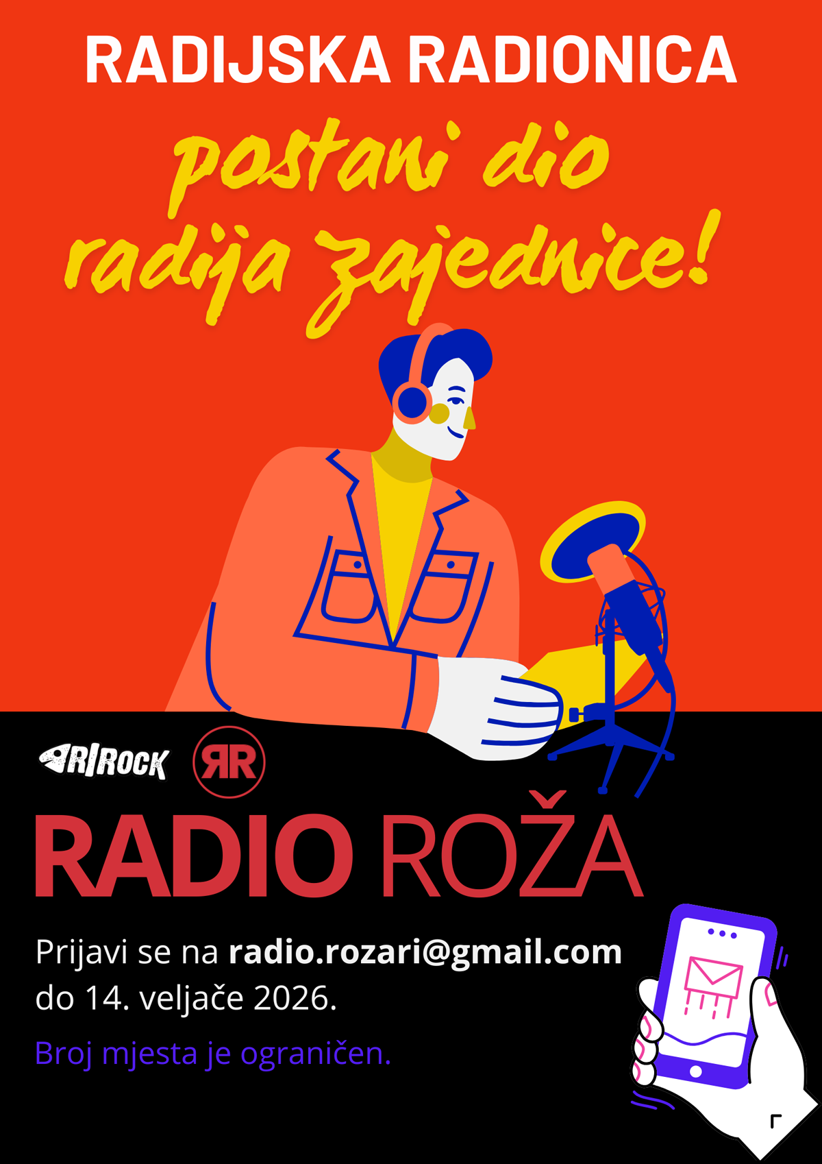 “Želimo otvoriti prostor ljudima koji u glavi imaju priču ili ideju, ali im nedostaju iskustvo i, ponajviše, prilika. Radionica je zamišljena kao praktičan ulazak u svijet radijskog novinarstva: od pripreme do emitiranja,” poručuju iz Radio Rože.