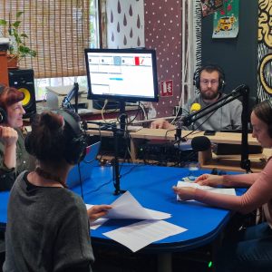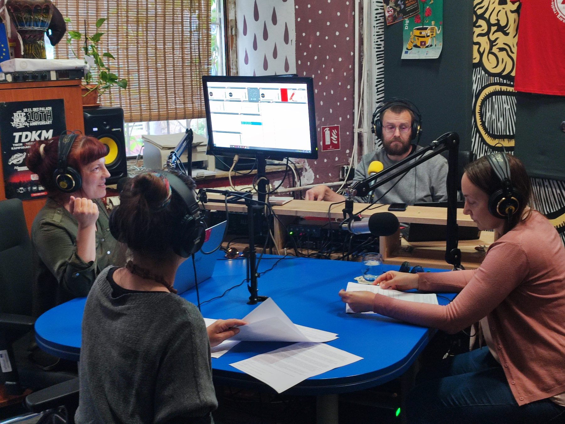 Radionicu vode glavni urednik Radio Rože Davor Popdankovski, tonski majstor Sebastijan Tomažin te urednici Martina Blečić i Edin Vesković.