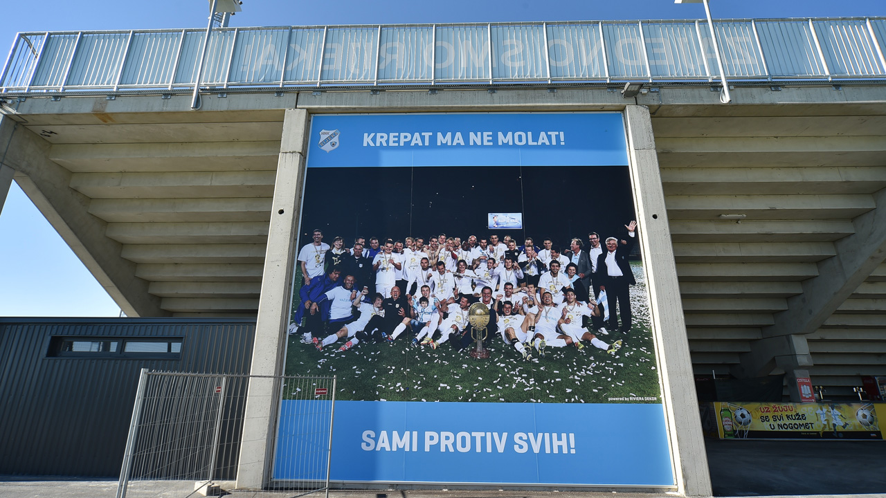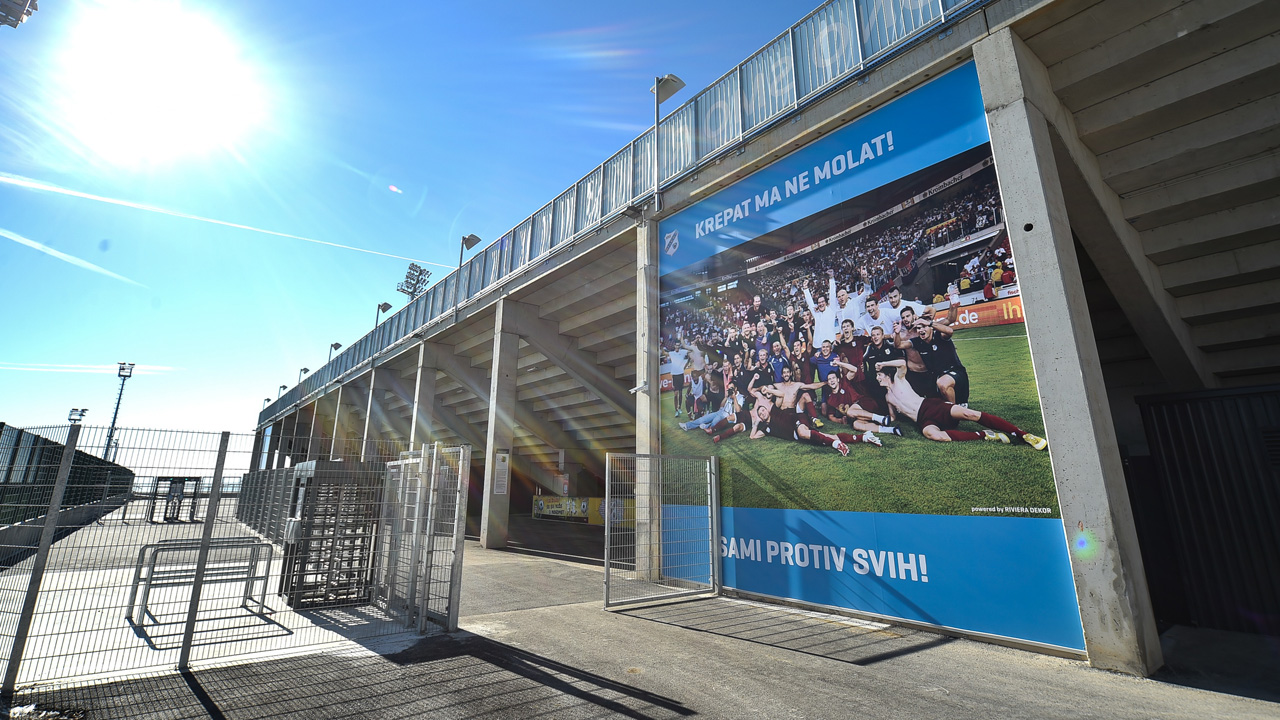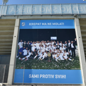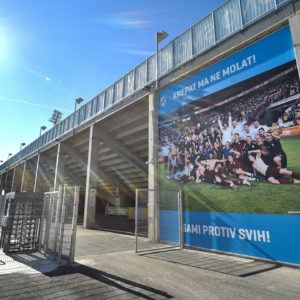 istočne tribine postavljena su ujedno dva velika plakata, podsjetnik na