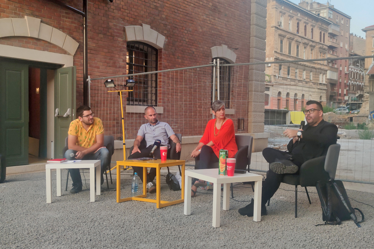 U razgovoru pod nazivom “Rijeka, povijesni identiteti i jedan crveno-crni dox” sudjelovalo je troje respektabilnih istraživača riječke povijesti i kulture: povjesničarka i muzejska kustosica Tea Perinčić, povjesničar i teolog Marko Medved te povjesničar riječke književnosti i kulturolog Aljoša Pužar. Razgovor je moderirao Kristian Benić iz Gradske knjižnica Rijeka.