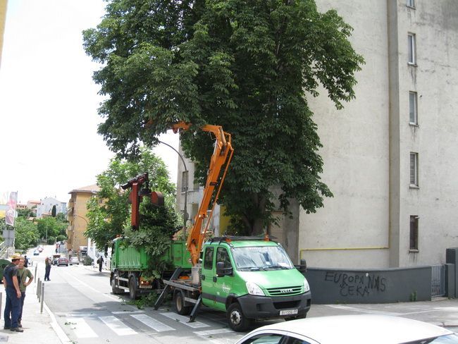 Danas je više od sat vremena nekoliko djelatnika Energa u Ulici Mihačeva draga, ispred broja 9, postavljalo novi rasvjetni stup