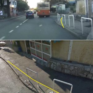 Autobusno ugibalište na Zametu (Diračje bivše okretište linije 2) ovako kako je izvedeno ne služi svsi tj. autobus “harmonika” ne može u potpunosti ući u ugibalište. Mislim da se manjim zahvatom na smanjenju trotoara može dobiti na mogućnosti da autobus cijeli uđe u ugibalište, a da pješaci ne izgube na širini trotoara jer je na tom mjestu dovoljno širok.