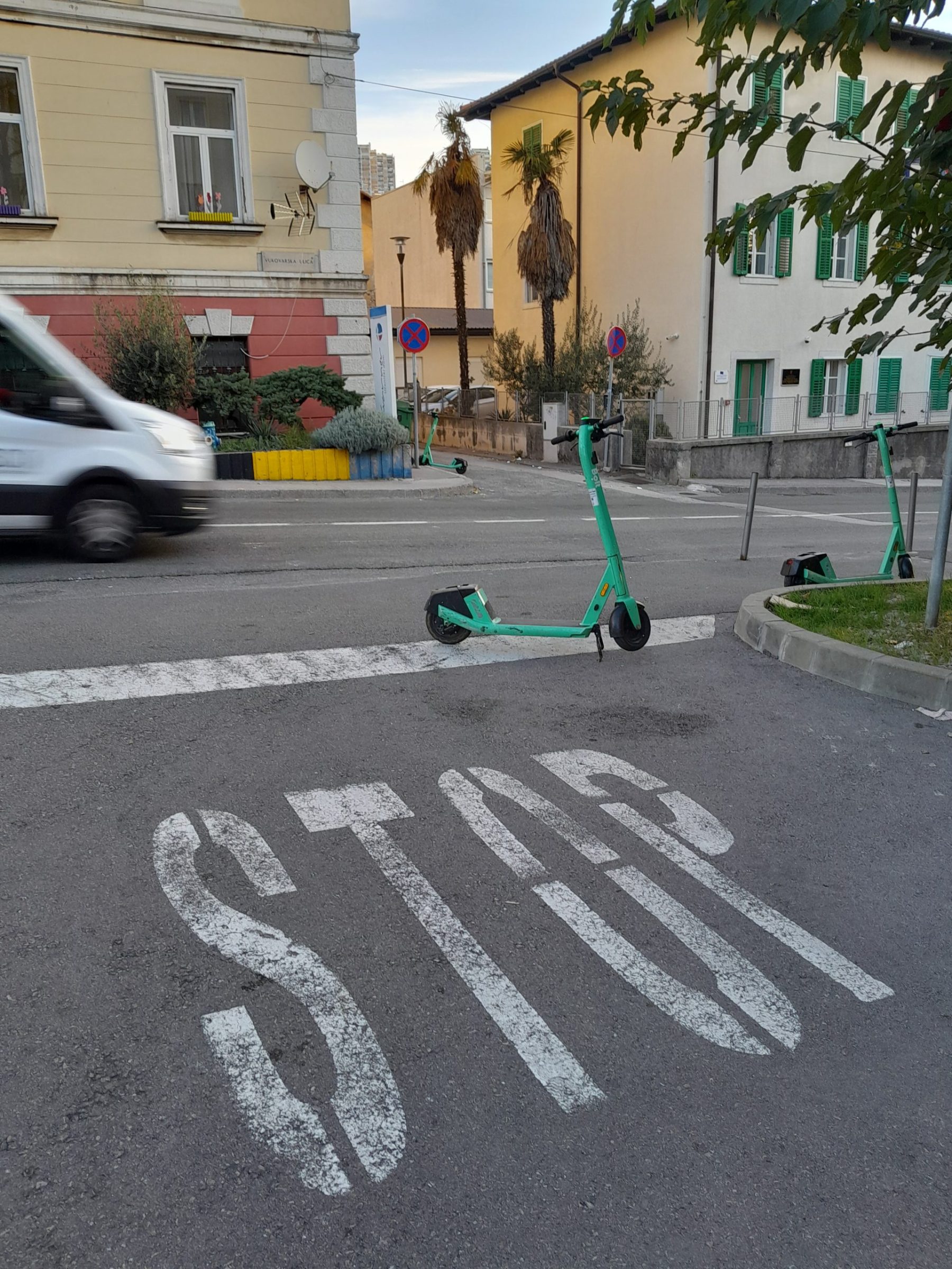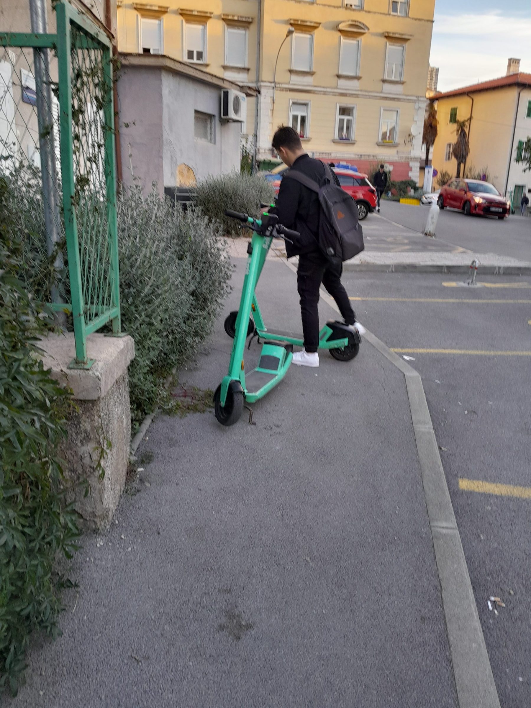 Prilažem fotografije snimljene 6.11.2024. oko 7:20 h u Vukovarskoj ulici 11 u Rijeci iz kojih je vidljivo kako pojedini korisnici Bolt-romobila (u nedostatku svoje prometne kulture) ugrožavaju sigurnost prometa i ometaju pješačke komunikacije.