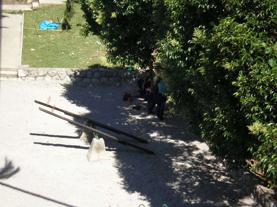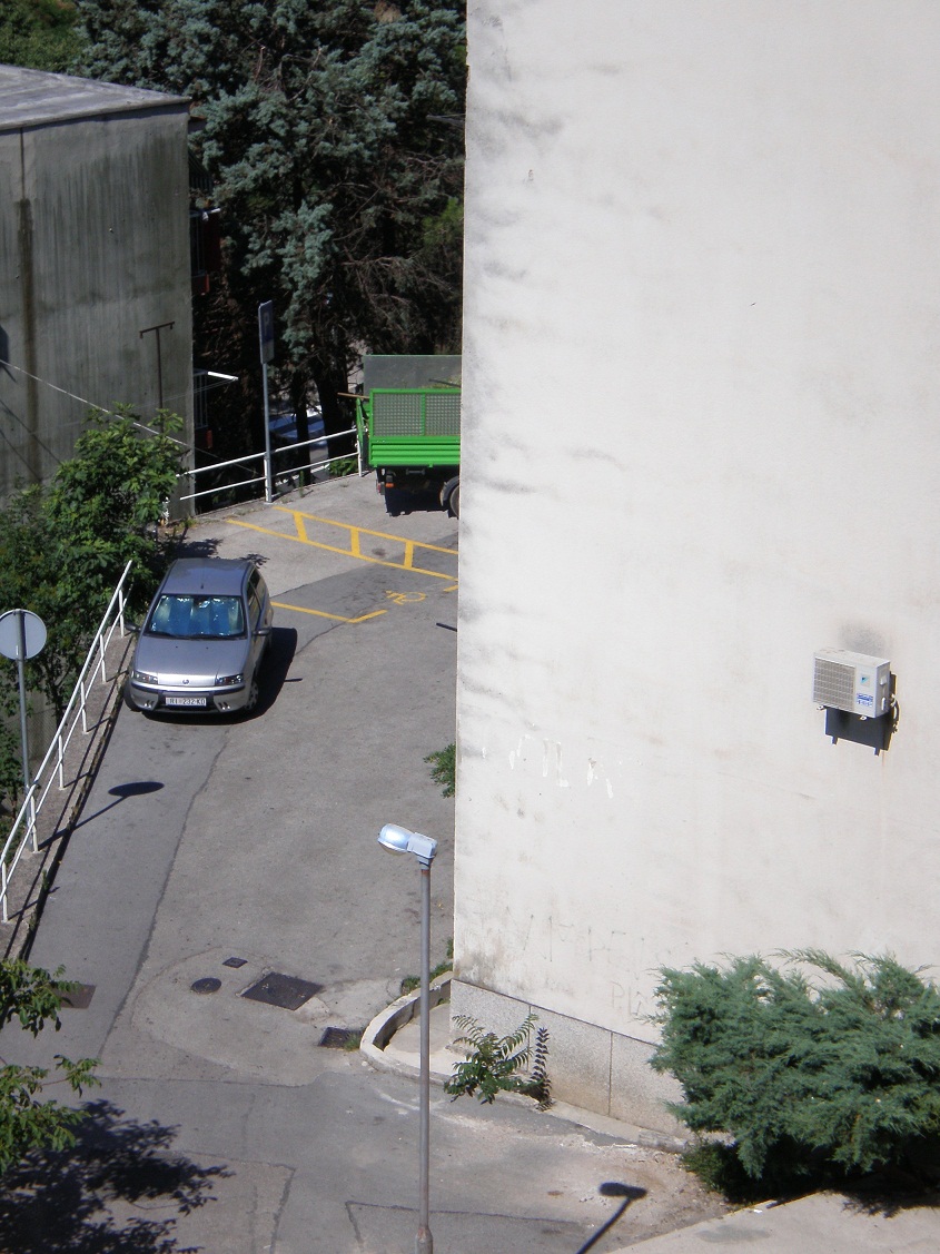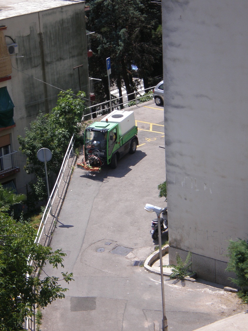 Danas ujutro dolazi Čistoća, cijelo parkiralište prazno, oni parkiraju na invalidna mjesta.(od 9h do oko 12h su parkirani na njemu) Oko 9 počinju raditi (kositi),za oko pola sata uzimaju pauzu do sada, oko 11h, za to vrijeme su se igrali na klackalicama, jedan je išao po pive u dućan, a ostalih 6 sjedi u hladu. Oko 11h počinju opet kositi travu, iza Jelićeve 13 kod odrona skoro nisu ništa pokosili, nisu maknuli maleno stablo (neki čempres valjda) koje im je uvenulo 2008.(onda su možda Parkovi to posadili) Jedan je urinirao iza zgrade dok niže ima kafić. No, pohvale ovima koji čiste nakon što kolege odrežu sve, to je jedini kako treba obavljeno.