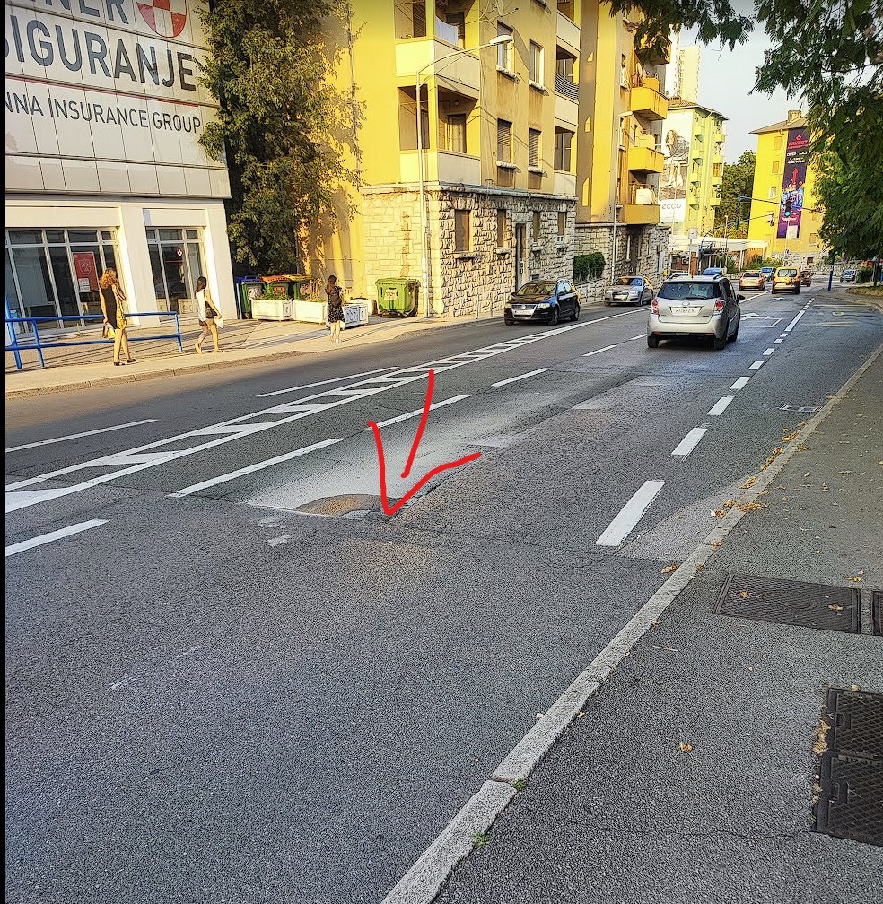 Isto na cesti kod Osječke 71, javna cesta što vodi do Konzuma, već 2-3 mjeseca im konstantno curi voda po cesti, čak je i na Google Street View prisutna, kada će se i to sanirati?