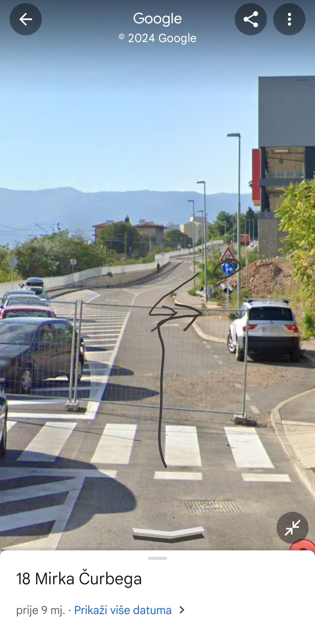 Kada se sa zapadne strane nastavi cesticom ispod Interspara na Krnjevu i/ili kada s istočne strane nastavi ravno iz Ul. Mirka Čurbrega prema parkingu (garaži) od Interpara u jednom trenutku postoji kolnička signalizacija (ne samo kolnička nego i vertikalna) da se može skrenuti desno i vidljivo je da je cesta namjenjena da vodi negdje desno (lijevo ako se ide iz smjera Kantride). Sada ta cestica vodi ravno u grmlje odnosno nigdje ne vodi nigdje i nije asfaltirana odnosno ne može se uopće tamo ići motornim vozilom. Gdje bi ta (pretpostavljam buduća) cestica trebala voditi? U planirane nove nebodere istočno od Interspara ili negdje drugdje?
