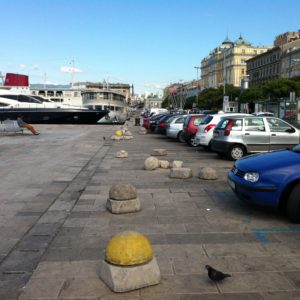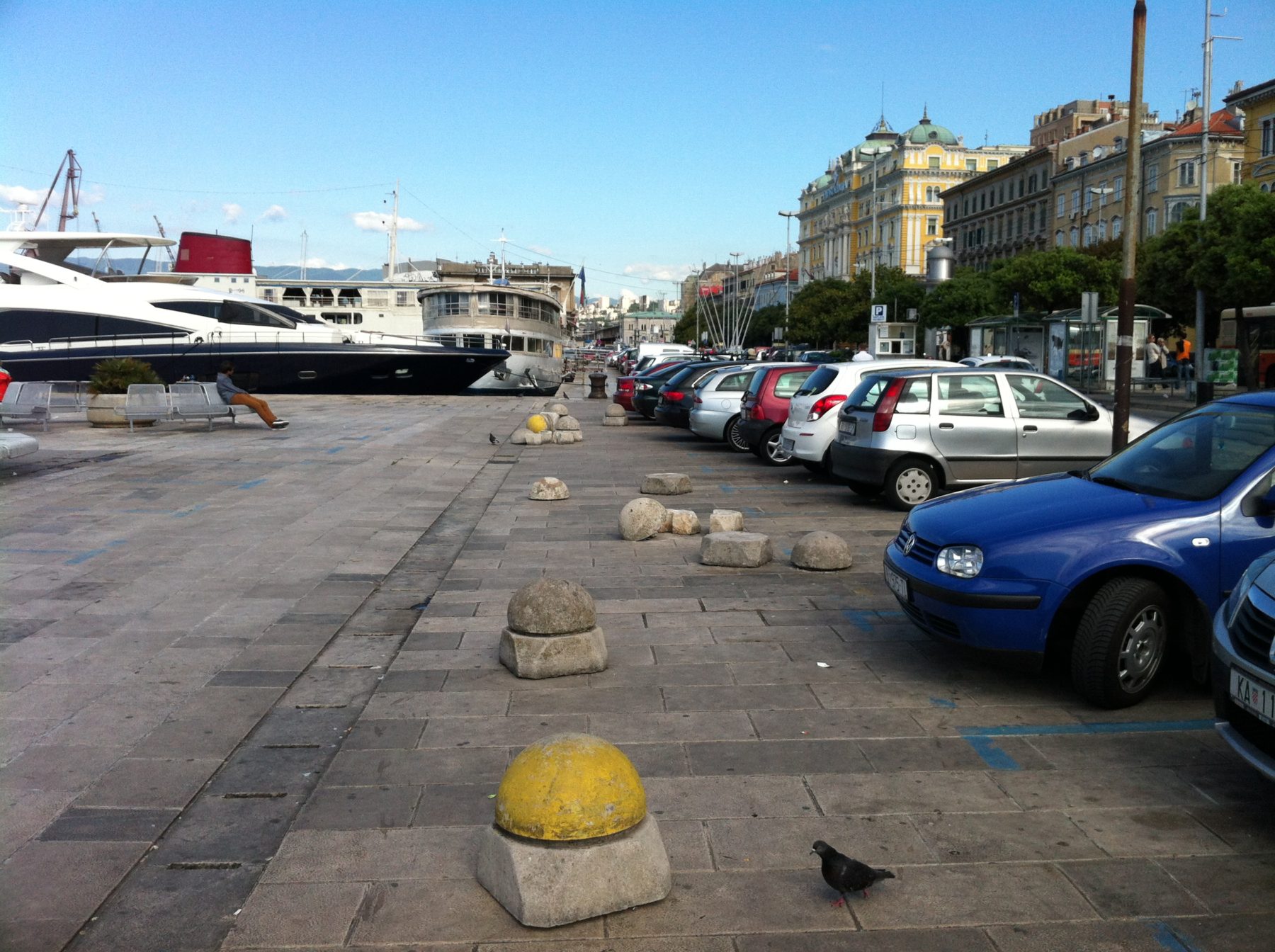 betonske polukugle koje odvajaju područje javnog parkirališta kojime upravlja Rijeka promet d.d. od lučkog područja, u nadležnosti su Lučke uprave Rijeka. Lučka uprava brine se za postavljanje i održavanje granice između lučkog područja i ostalih javno-prometnih površina, pa tako i za prepreke na području Gata Karoline Riječke. Stoga su obaviješteni o stanju i te su ih djelatnici Rijeka prometa zamolili da se prepreke vrate na svoja mjesta.
