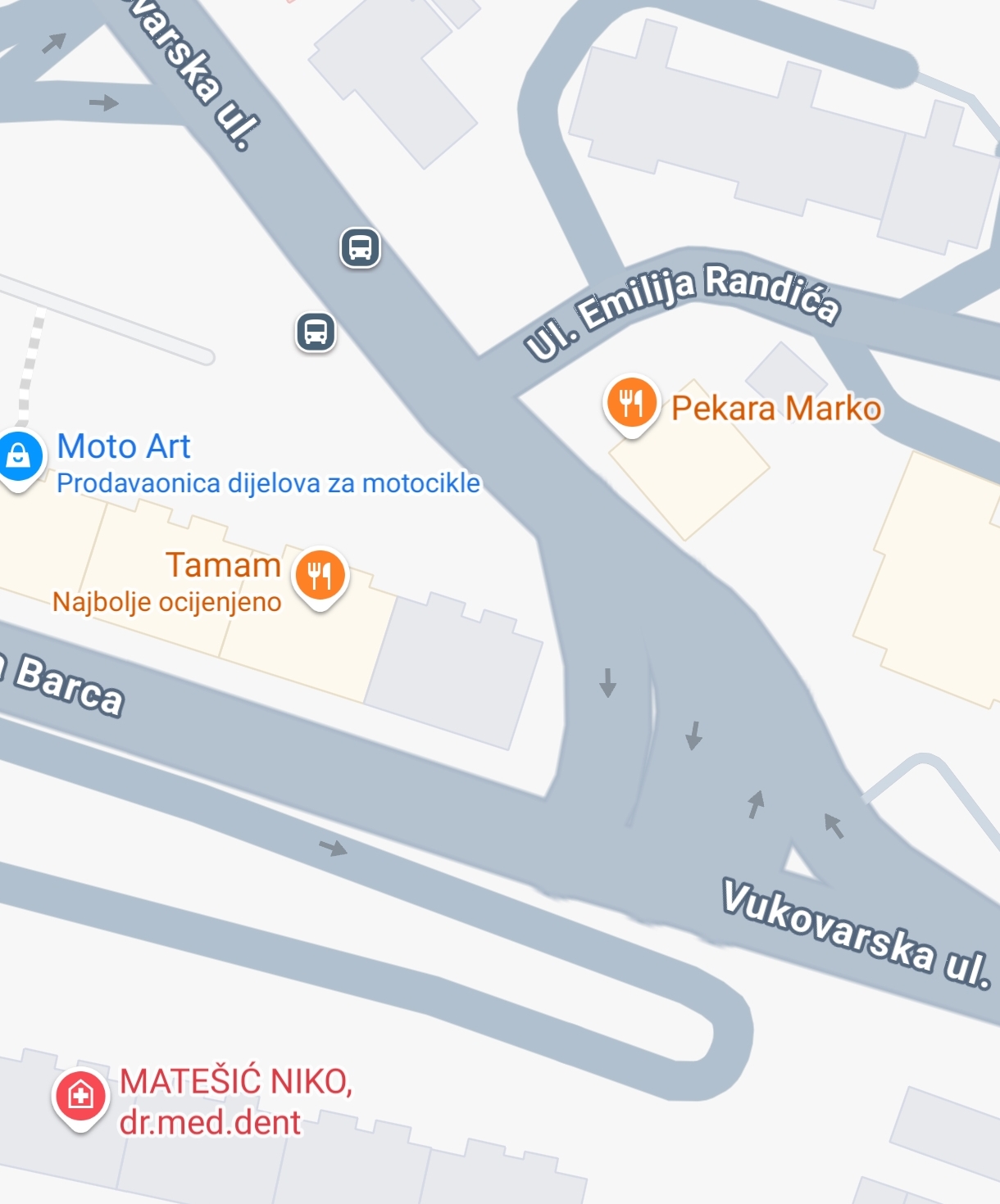 Pošto trenutno traju radovi malo iznad raskrižja ul. A. Barca i Vukovarske ulice, trenutačno je na snazi ‘nova prometna regulacija’. Sva vozila koja se spuštaju iz Vukovarske ul. prema centru i Turniću su preusmjerena na lijevi semafor odnosno u lijevu traku prema centru. Desna traka prema Turniću i Rujevici je zatvorena.