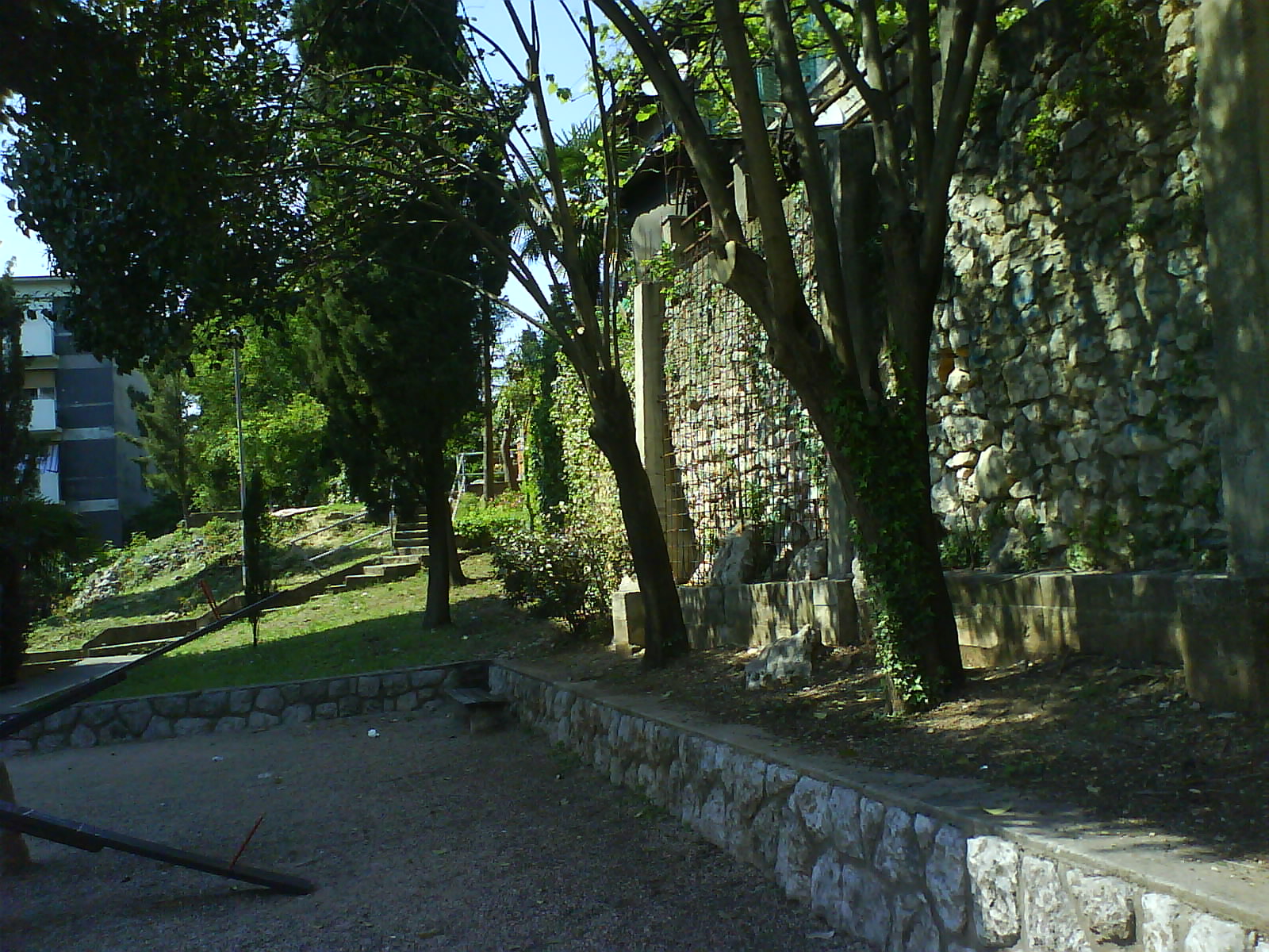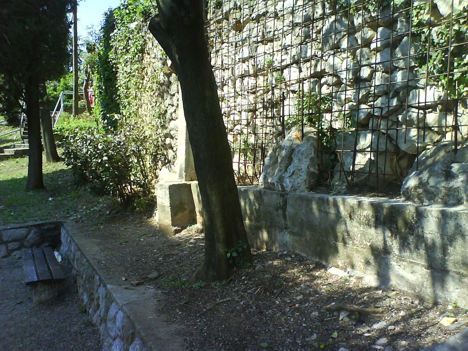 Nakon što sam došao u park, normalno uočio sam odmah stup o kojem se govori no nešto drugo mi je upalo u oči. Oko parka postoji ogroman zid koji mi se činio ispucalim. Došao sam do njega i iznenadio se, na zid su postavljeni oštri ruzinavi limovi, postolje za betoniranje itd.