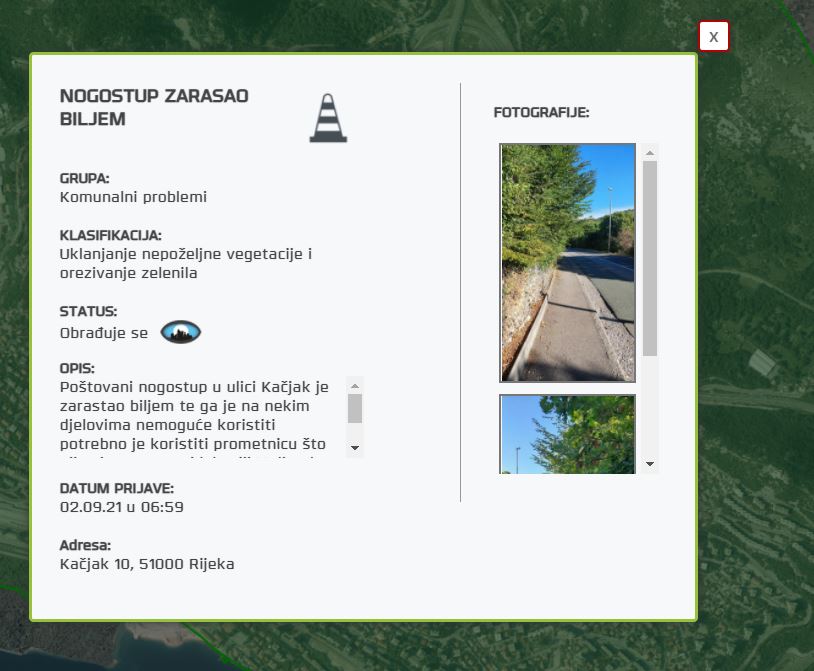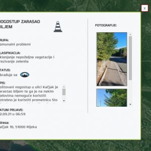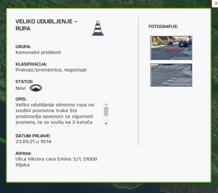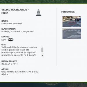 Također 23.09.2021 prijavio sam/podnio zahtjev za još jedan problem vezan za prometnice te veliko udubljenje tj rupu do danas taj zahtjev nitko nije ni vidio te poslao u obradu.